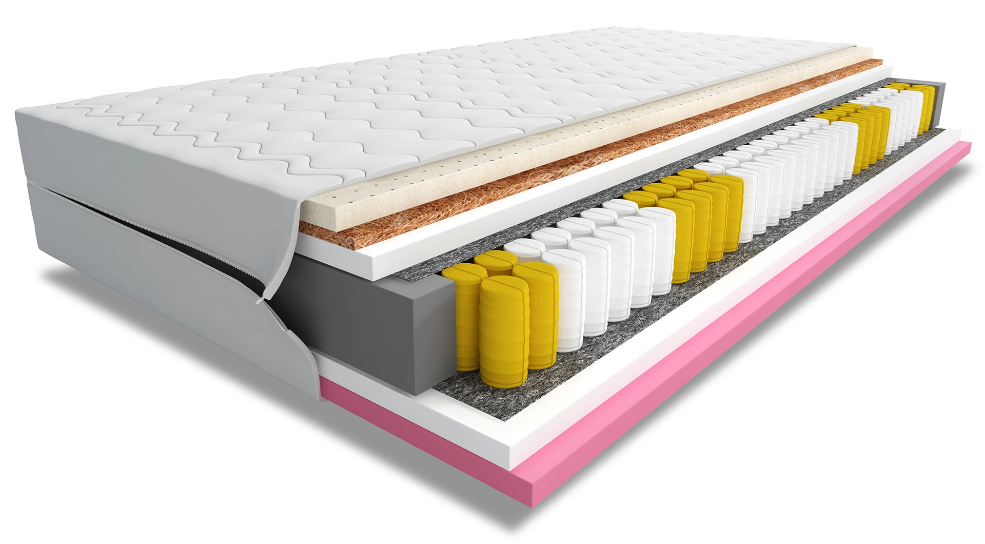 - Komfort und Unterstützung: Perfekte Anpassung an die Körperform dank der Kombination aus Latex, Polyurethanschaum und Taschenfedern.