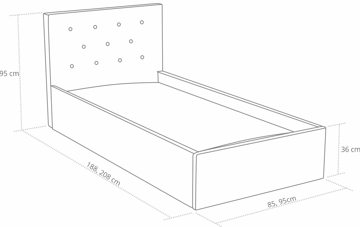 Ein Jugendbett, das zeitloses Design und Eleganz mit einem Hauch von Modernität verbindet. Dank der großen Auswahl an Größen lässt es sich in jede Einrichtung integrieren. Weiche Kanten und ein wunderschön gestepptes Kopfteil mit Zirkonen schaffen eine einzigartige Atmosphäre im Schlafzimmer