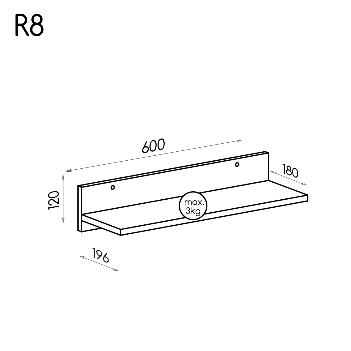 Das Regal ist 60 cm breit und kann überall in Ihrer Wohnung an der Wand angebracht werden. Die Tiefe von 19,5 cm ermöglicht es Ihnen, auch größere Bücher unterzubringen, und die Höhe von 12 cm sorgt für Stabilität und Haltbarkeit. Das Regal Romero R8 ist aus hochwertiger laminierter Platte gefertigt, robust und langlebig, so dass Sie viele Jahre lang Freude daran haben werden.