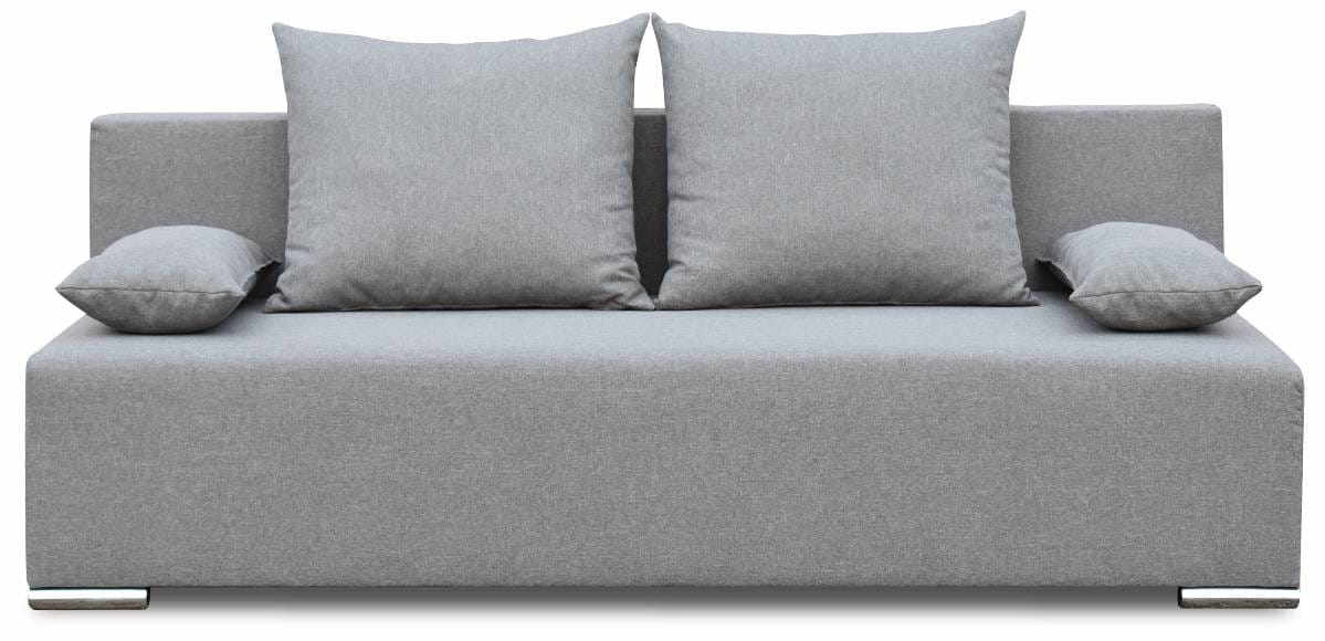 Das Komfortsofa steht für modernen Stil und hohen Nutzungskomfort. Es ist mit zwei Kissen ausgestattet, die als Armlehnen und zwei als bequeme Rückenlehne dienen. Der Mechanismus, der das Aufklappen des Sofas erleichtert, ermöglicht es sogar einem Kind, das Sofa ohne große Anstrengung aufzuklappen und in ein bequemes Bett in voller Größe mit einer Liegefläche von 135x195 cm zu verwandeln.