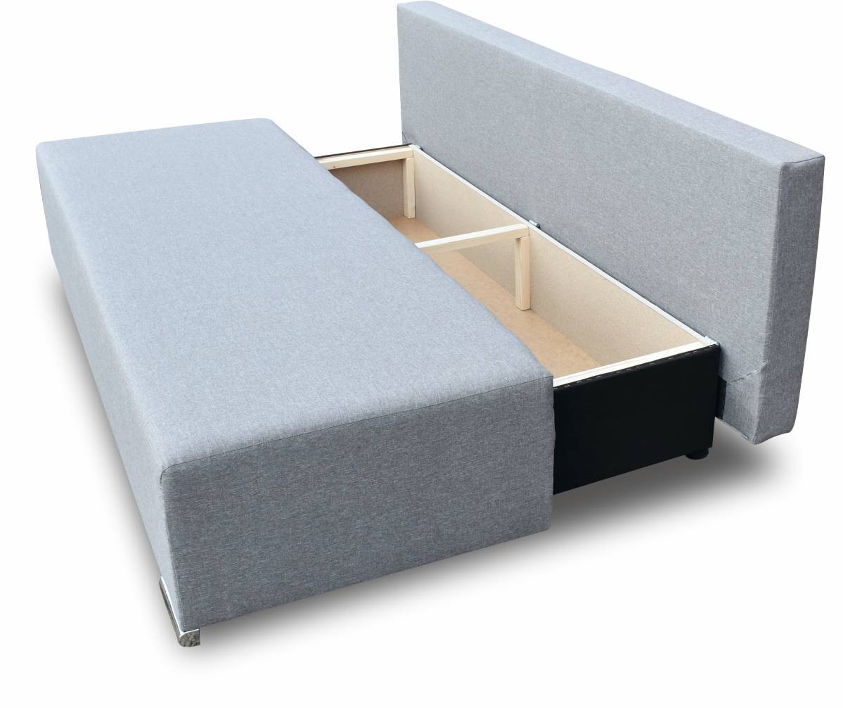 Ein zusätzliches Plus ist der praktische Bettzeugbehälter, der dank des einfachen Öffnungs- und Entfaltungsmechanismus leicht zugänglich ist. In weniger als einer Minute verwandelt sich das Sofa in ein sehr bequemes Bett.