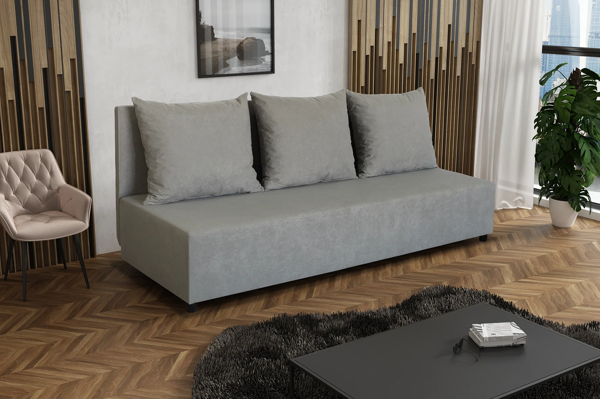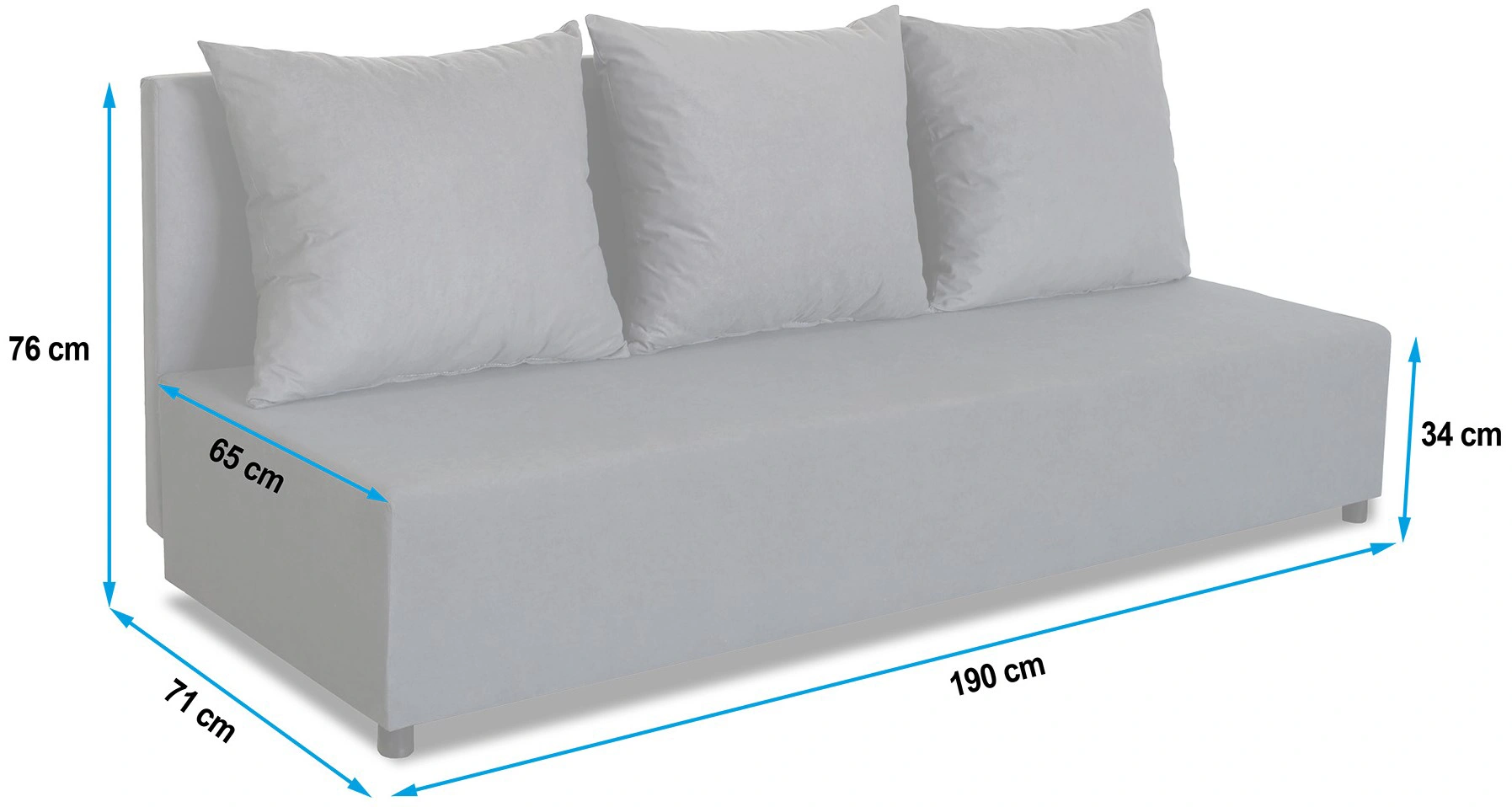 Das moderne Sofa mit Schlaffunktion und Staufach ist die perfekte Lösung für Ihr Wohnzimmer! Es bietet einen bequemen Platz zum Sitzen und Entspannen und bietet im zusammengeklappten Zustand einen Schlafplatz für zwei Personen. Schieben Sie einfach den Sitz und das Sofa verwandelt sich schnell in ein Bett mit einer Liegefläche von 130x190 cm. Der Bettzeugkasten unter der Sitzfläche bietet außerdem Stauraum für Ihre Utensilien. Kaufen Sie unser Sofa jetzt und genießen Sie ein stilvolles Sofa für wenig Geld!