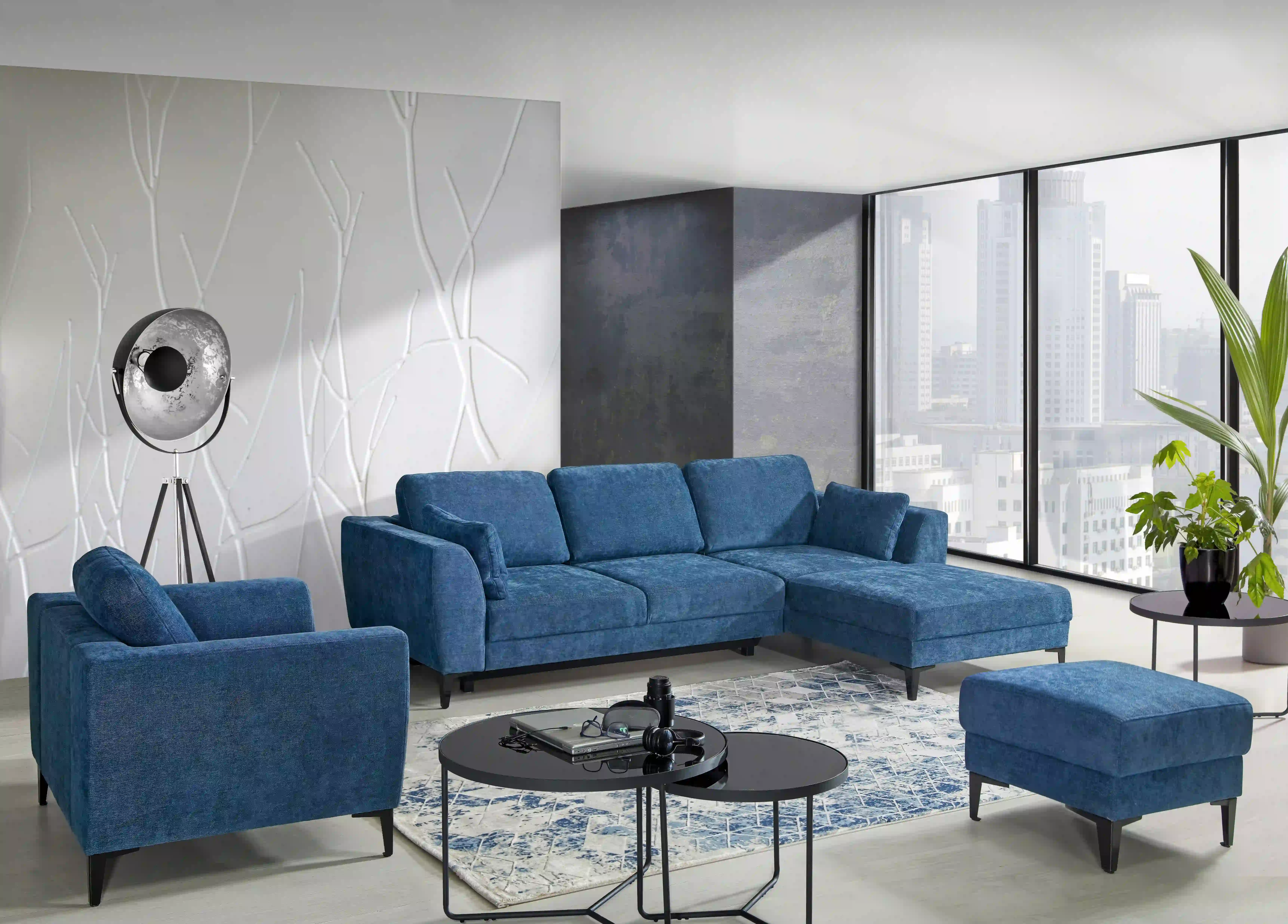 Mit dem Ecksofa Imperia in der charakteristischen Farbe Blau öffnen Sie Ihr Interieur für Modernität und Funktionalität. Das Ecksofa bietet einen großen Sitzbereich für Ihre Gäste und verleiht Ihrem Wohnzimmer einen schönen Look!