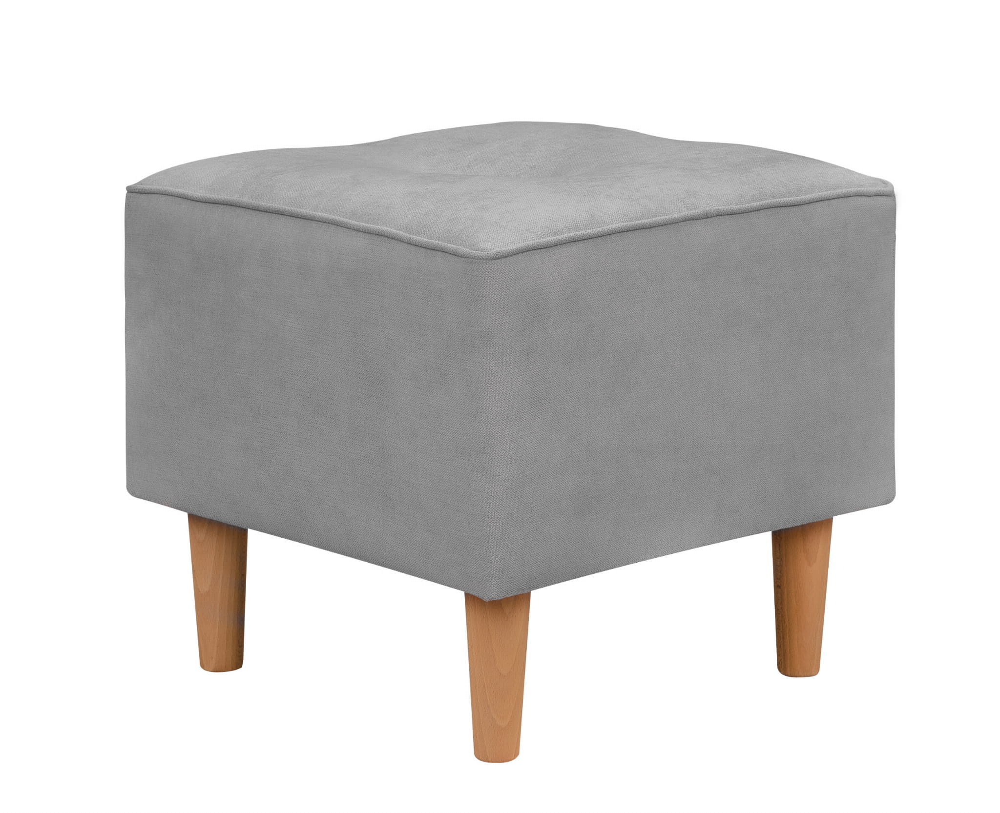 Fußhocker im skandinavischen Stil. Das Fundament des Möbels besteht aus vier massiven Holzbeinen in heller Naturfarbe. Das Ganze ist aus Enjoy/Sawana-Stoff gefertigt, der eine sehr hohe Abrieb-, Ausbleich- und Verblassungsbeständigkeit gewährleistet