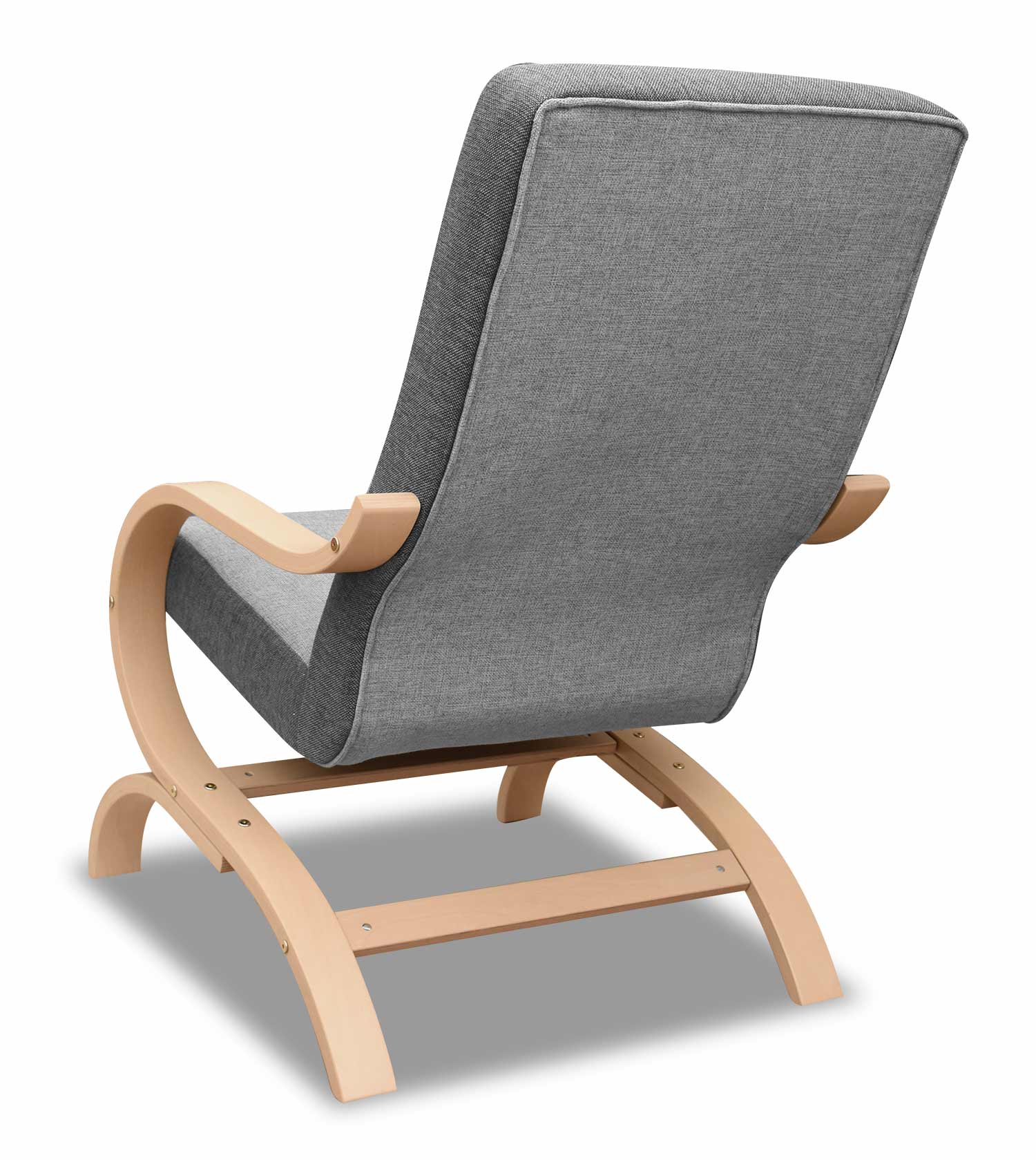 Die hohe und bequeme Rückenlehne und die großen, konturierten Armlehnen sorgen für einen hohen Liegekomfort. Das Gestell aus massivem Buchenholz garantiert eine hohe Langlebigkeit. Der finka Sessel ist die perfekte Ergänzung für jedes Wohnzimmer oder Zimmer.