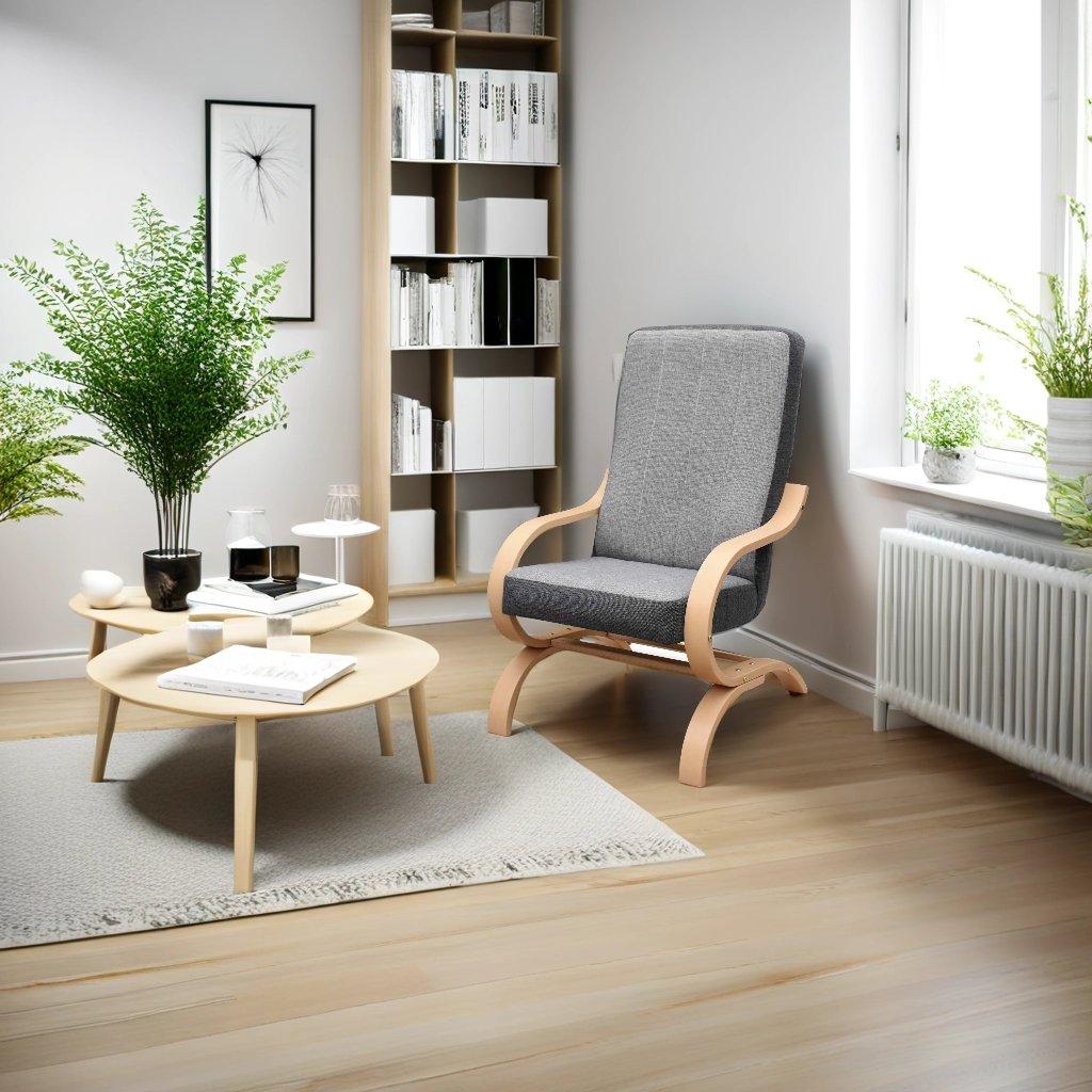 Das Gestell des Sessels ist aus hochwertigem Massivholz gefertigt. Dies führt zu einer äußerst komfortablen und starken Konstruktion mit einer sehr hohen Steifigkeit. Sie können sicher sein, dass der Sessel problemlos einer Belastung von bis zu 150 kg standhält und einen außergewöhnlichen Komfort bietet.