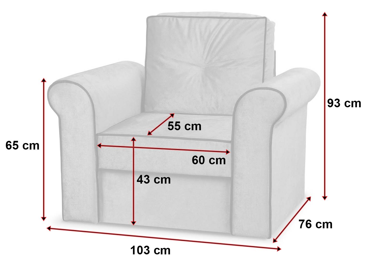 Der Sessel Merida ist ein äußerst bequemes Möbelstück. Jedes Detail wurde verfeinert, um dem Benutzer maximalen Komfort zu bieten. Die Sitzhöhe beträgt 43 cm, wodurch das Aufstehen aus dem Sessel erleichtert wird. Darüber hinaus hat der Wohnzimmersessel eine Sitzbreite von 60 cm. Das ist ein großer und sehr bequemer Platz. Außerdem haben wir eine Ablagefläche für unsere Hände. Die Armlehnen sind 21,5 cm breit, so dass wir uns ganz entspannen können. Wir haben den Merida-Sessel bereits benutzt und können raten: Um häusliche Konflikte darüber zu vermeiden, wer auf dem Sessel sitzen darf, ist es besser, gleich zwei zu kaufen.