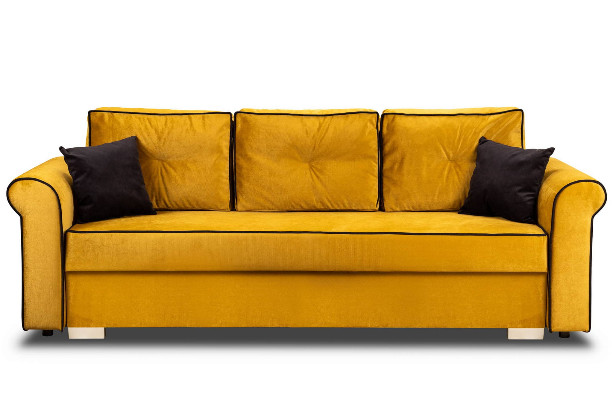 Das klappbare Wohnzimmersofa Merida bietet bequem Platz für drei Personen. Das Sofa ist mit einer Federkernmatratze ausgestattet, die dem Benutzer einen hohen Komfort bietet. Es hat breite Armlehnen, so dass Sie sich bequem zurücklehnen und entspannen können. Drei weiche, bequeme Rückenkissen schonen unseren Rücken.