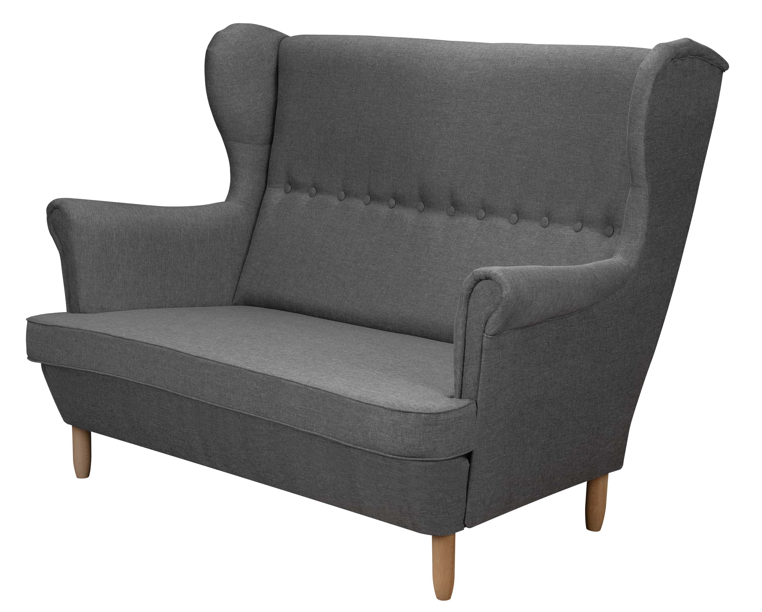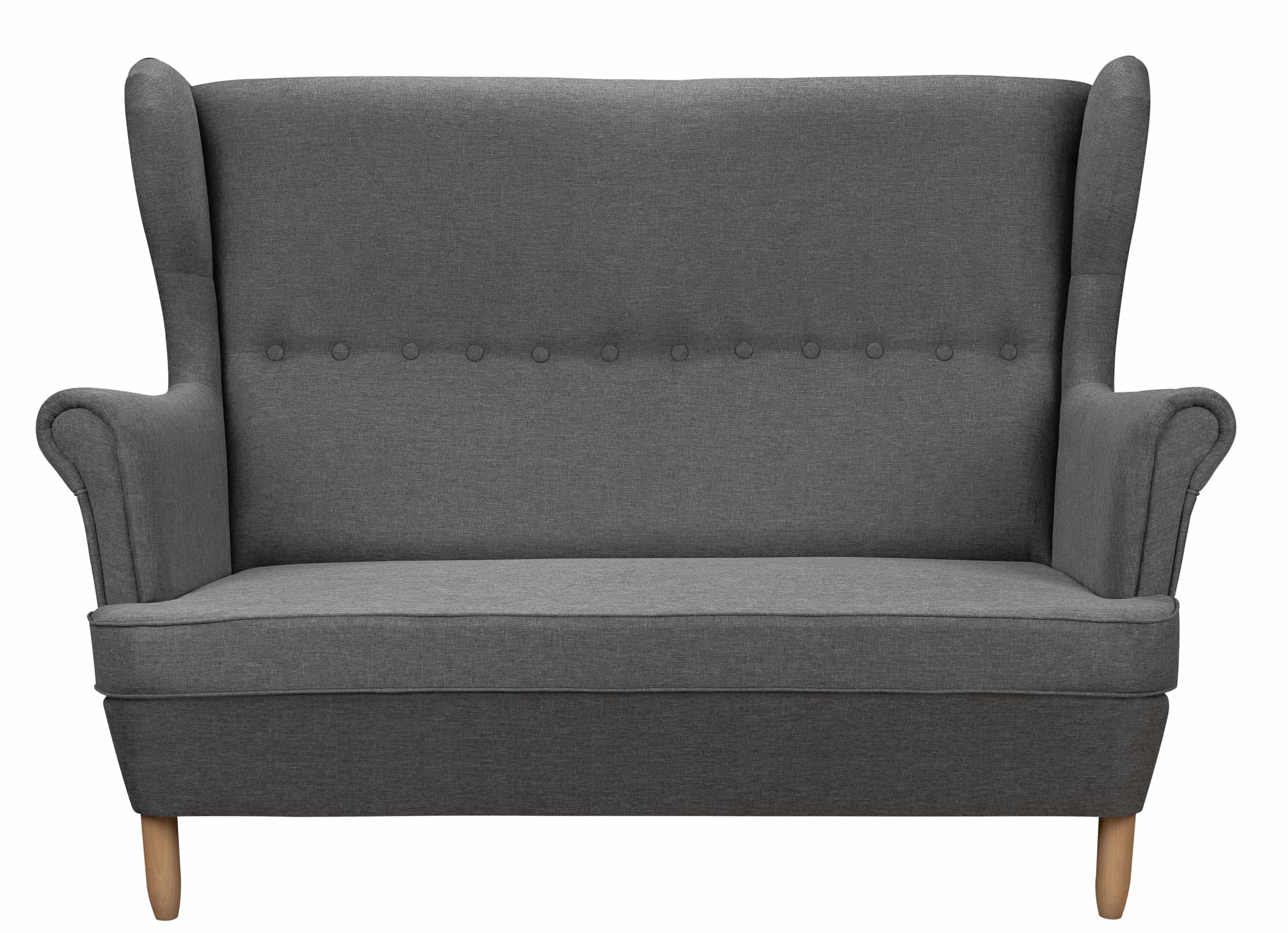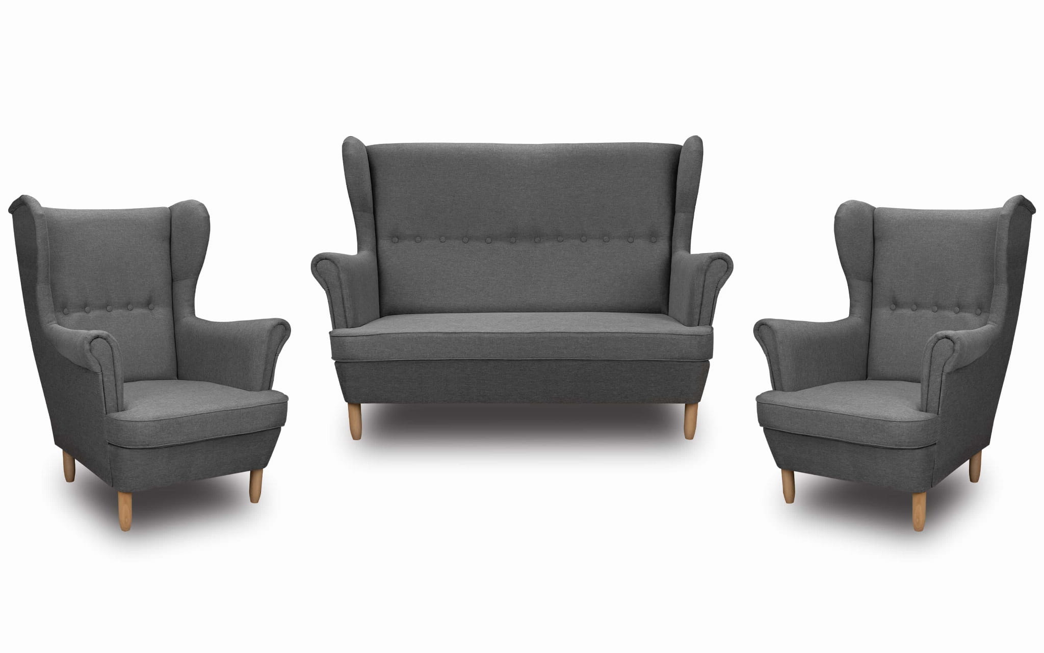 Der Sessel und das Sofa sind im skandinavischen Stil gehalten. Die hohe und bequeme Rückenlehne und die großen, konturierten Armlehnen sorgen für einen außergewöhnlich hohen Sitzkomfort. Das Fundament der Möbel besteht aus vier massiven Holzbeinen in einer natürlichen, hellen Farbe. Die tiefe Sitzfläche und die bequeme Rückenlehne mit den charakteristischen "Ohren", der so genannten Ohrenklappe, ist ein Produkt, das sich in letzter Zeit großer Beliebtheit erfreut.