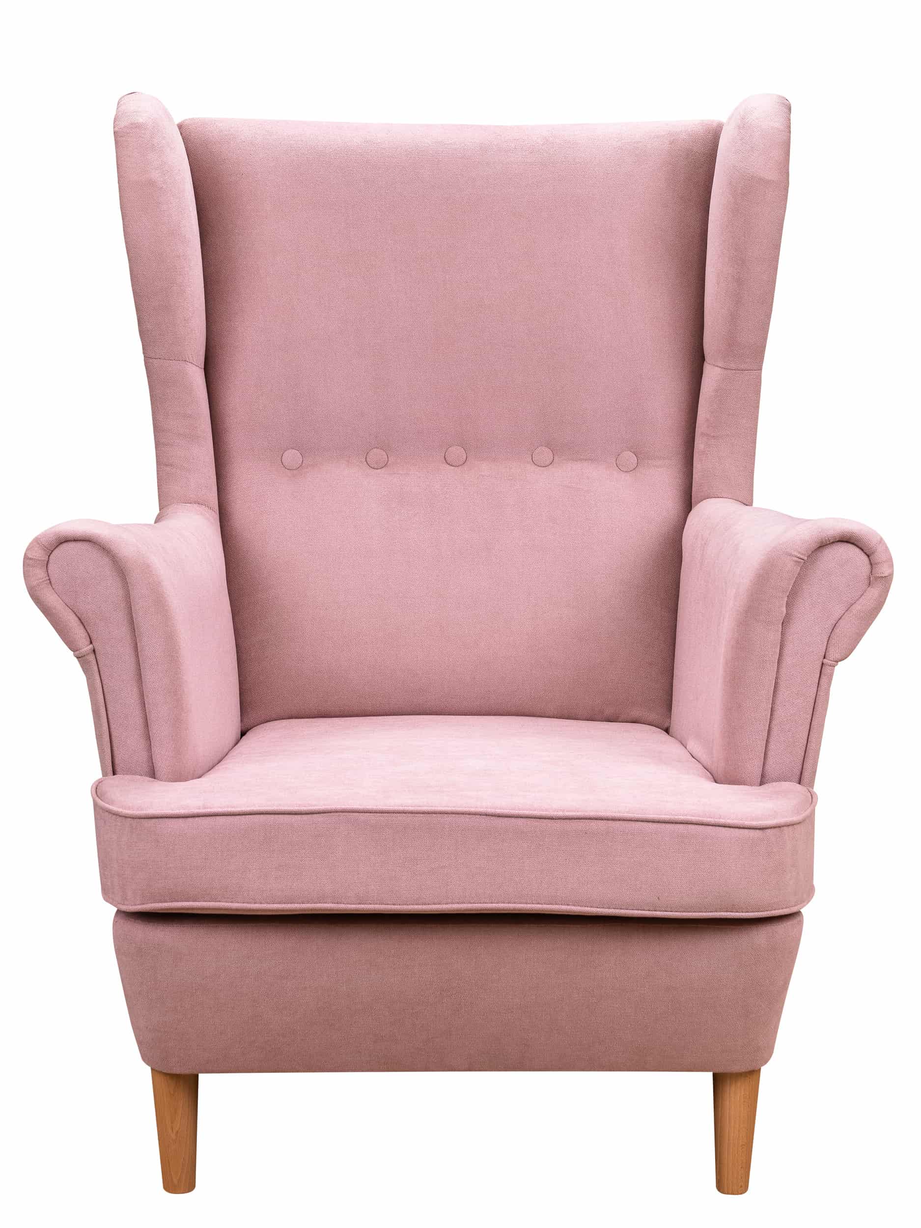 Sessel im skandinavischen Stil. Die hohe und bequeme Rückenlehne und die großen, geschwungenen Armlehnen sorgen für einen außergewöhnlich hohen Sitzkomfort. Das Fundament des Möbels besteht aus vier massiven Holzbeinen in heller Naturfarbe. Der tiefe Sitz und die bequeme Rückenlehne mit den charakteristischen "Ohren", der so genannten "Ohrenklappe", ist ein Produkt, das sich in letzter Zeit großer Beliebtheit erfreut.