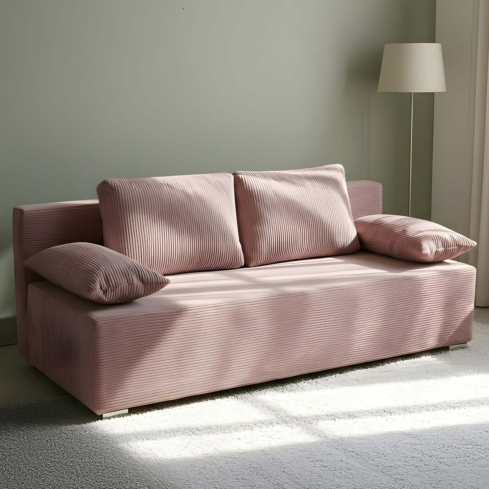 Schlafsofa Lunera 2 aus Cordstoff in Rosa