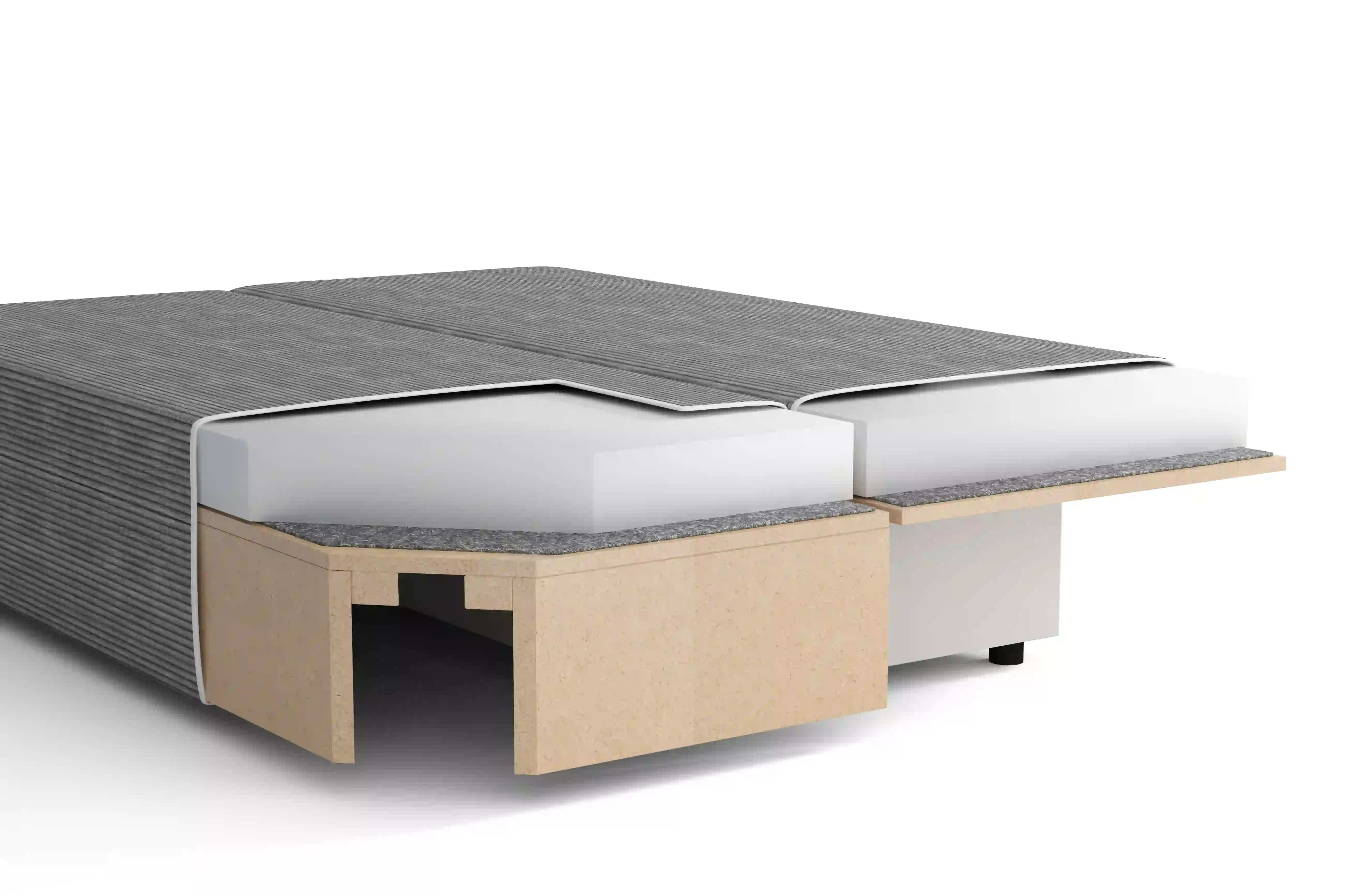 Dank des einfachen Rollsystems lässt sich das Sofa mühlos ausklappen. Der Stauraum bleibt dabei komplett frei von Metallmechanismen oder Stabilisatoren – für maximale Nutzfläche.