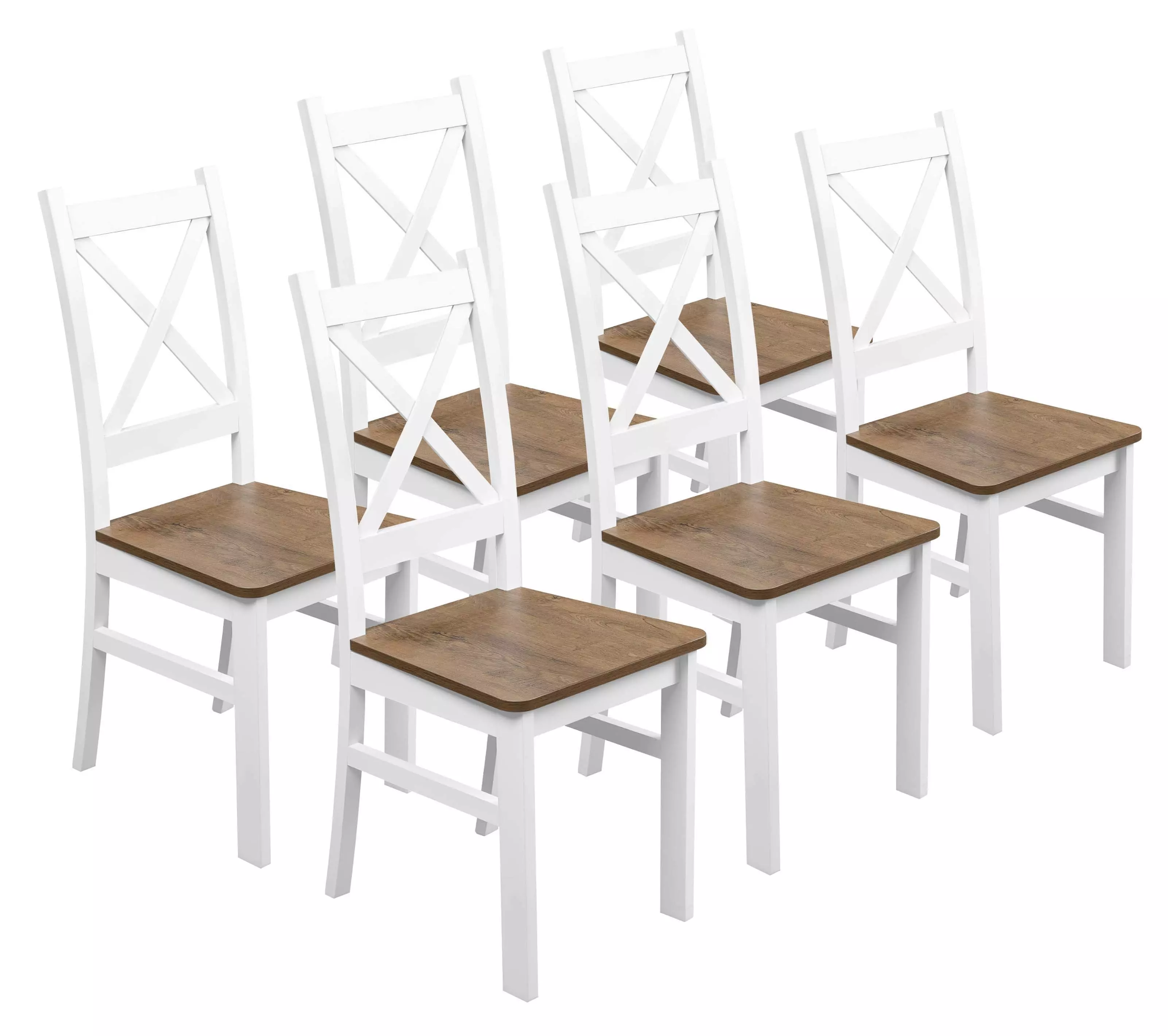Satz von 6x Holzstuhl KRT Weiß/Eiche Lefkas