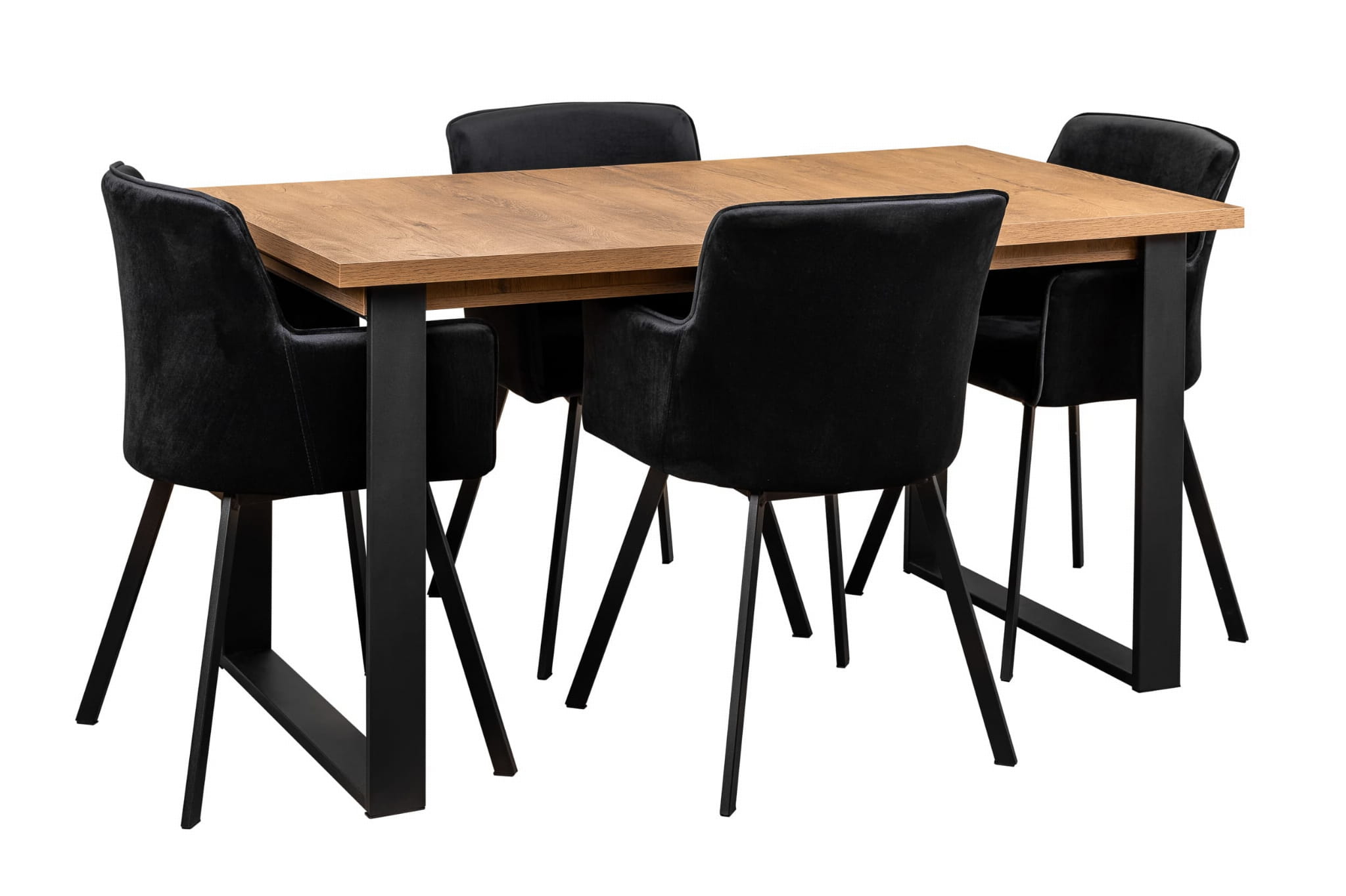 Tisch mit 4 Stühlen Y061 Schwarz/Eiche Lefkas