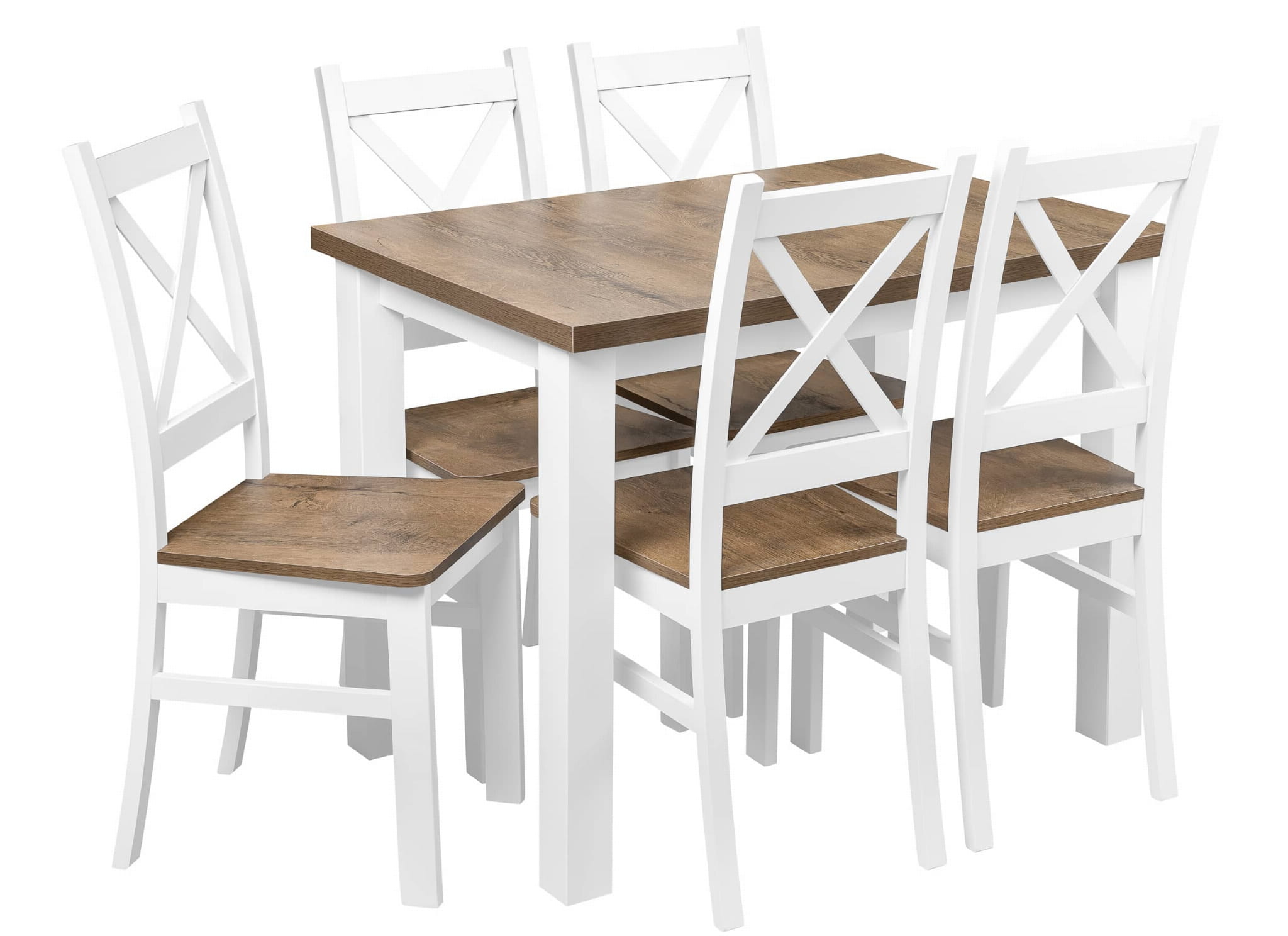 Tisch mit 5 Stühlen Z065 Weiß/Eiche Lefkas