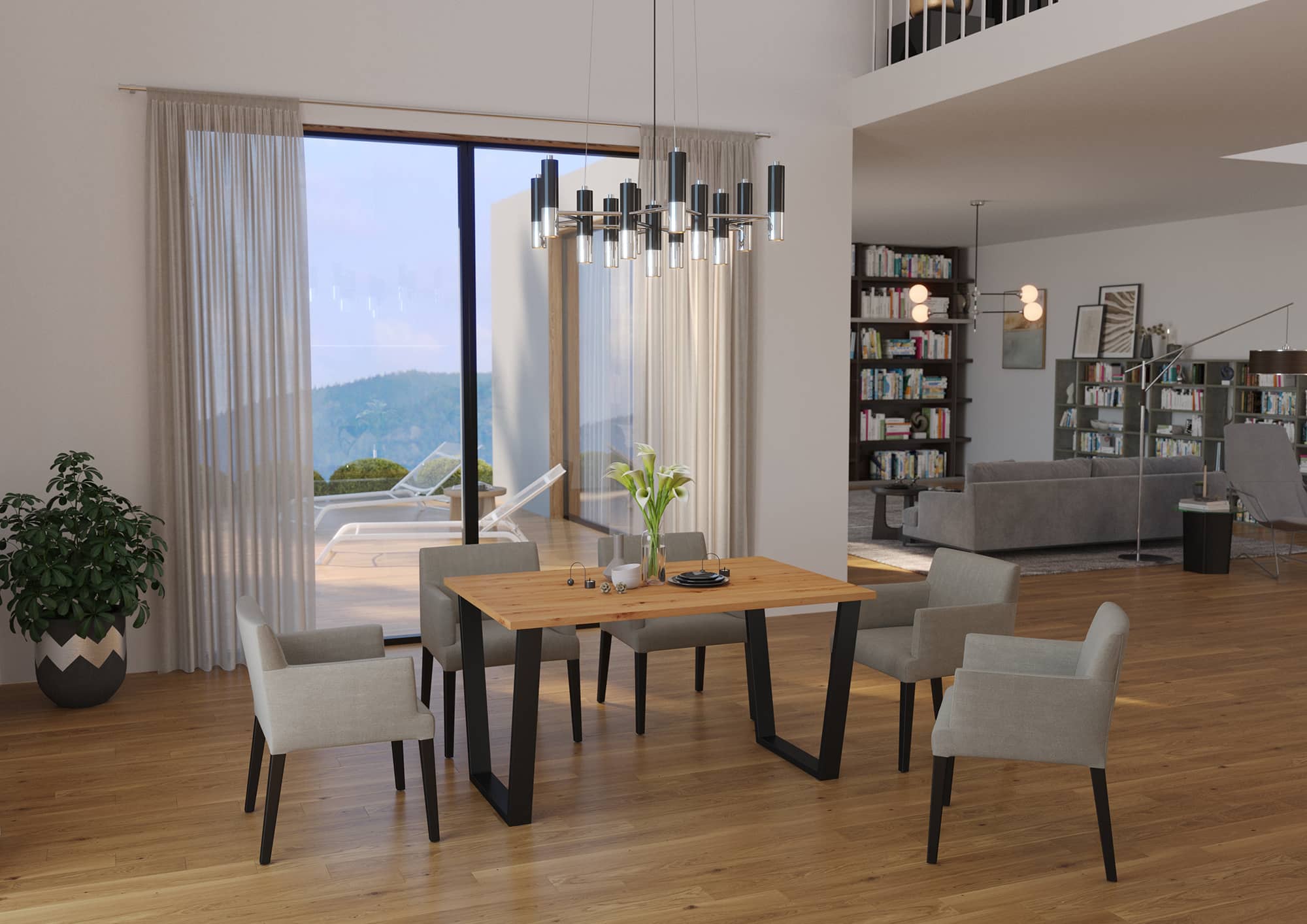 Ein robuster und vielseitiger Tisch mit Metallbeinen