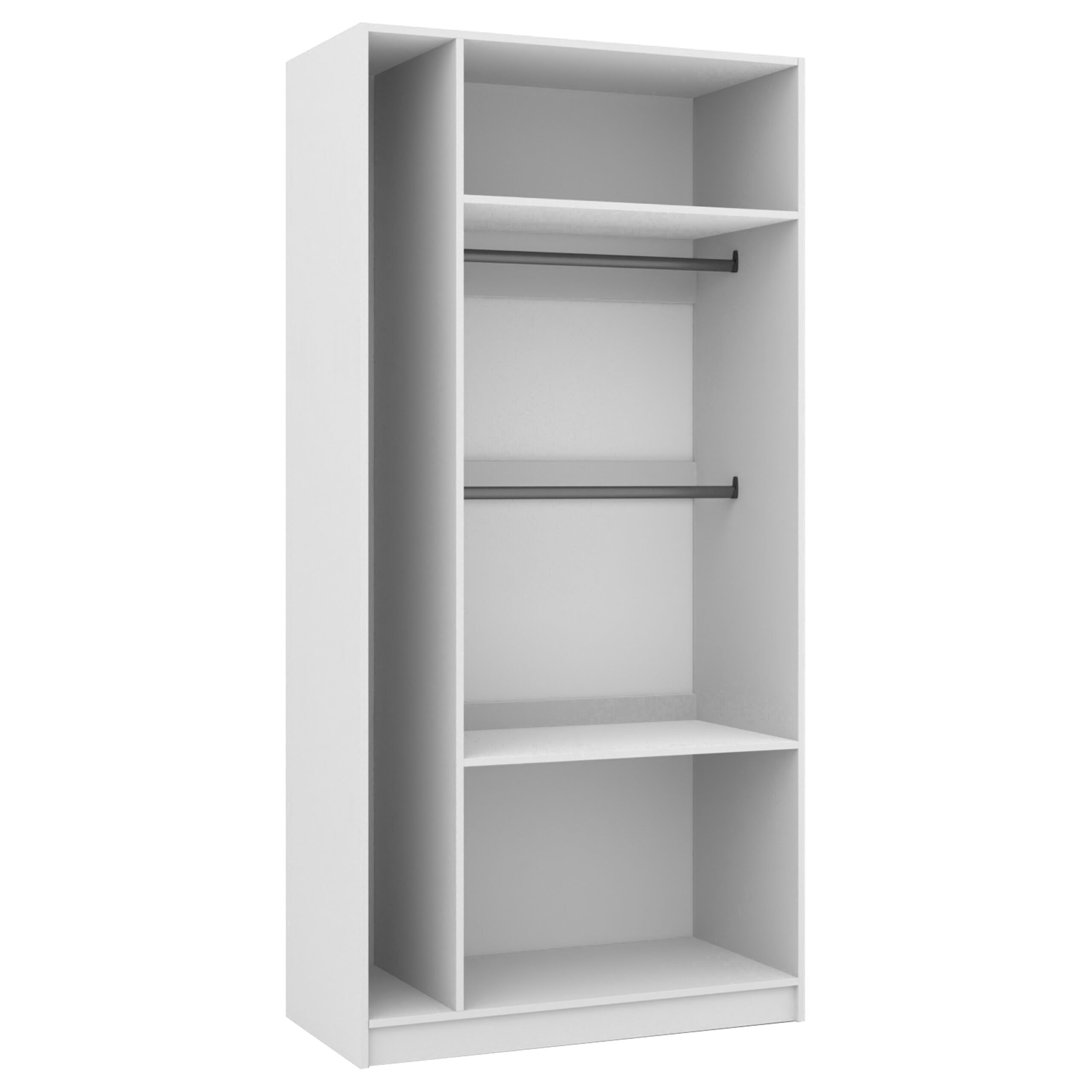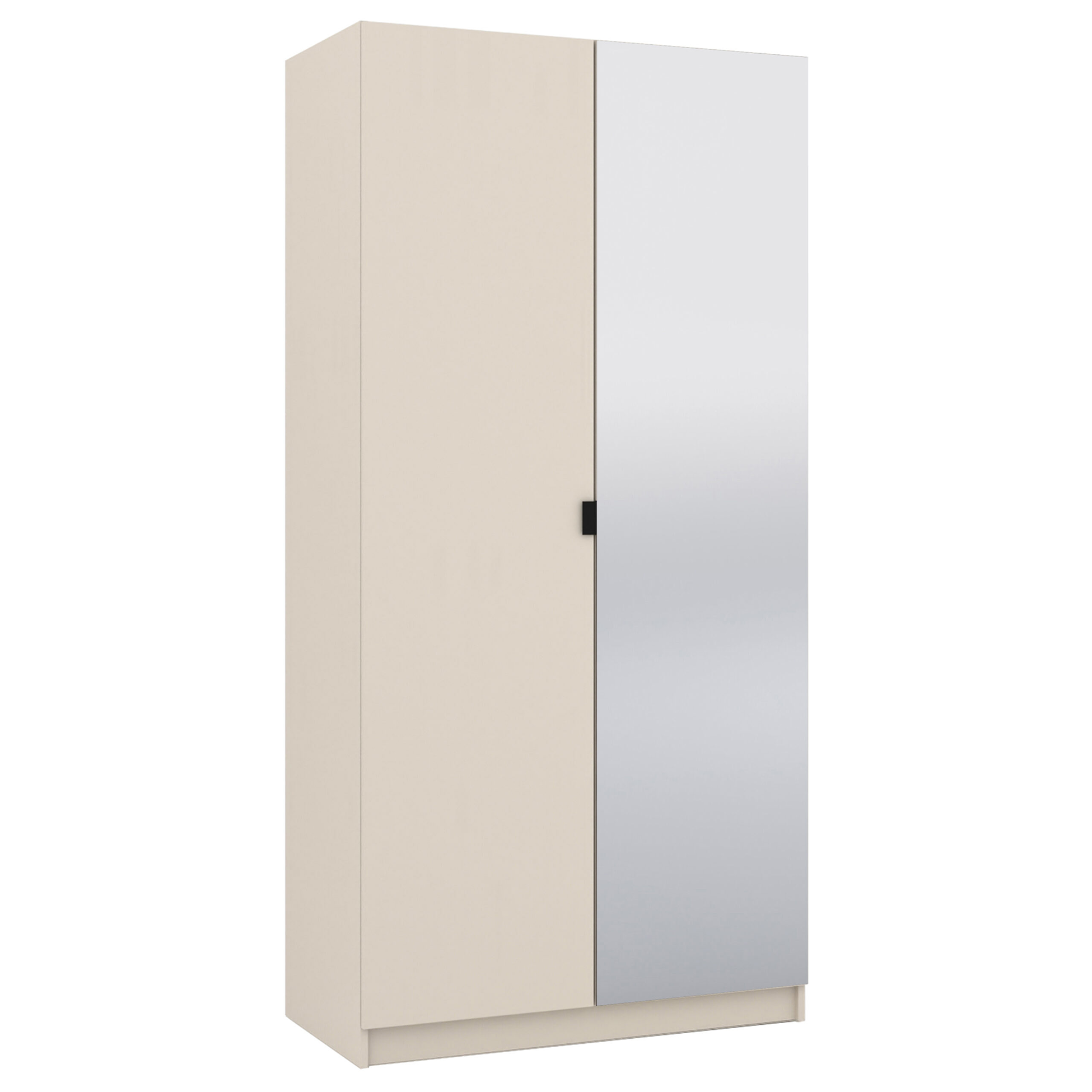 Suchen Sie ein modernes und funktionelles Möbelstück für Ihren Kleiderschrank? Entdecken Sie den 100 cm breiten Kleiderschrank mit Spiegel aus der Kollektion Foxen. Er ist aus hochwertiger laminierter Platte gefertigt und garantiert Langlebigkeit und Eleganz in Ihrer Einrichtung. Mit zwei Flügeltüren, drei Einlegeböden und zwei Stangen erhalten Sie idealen Stauraum für Ihre Kleidung und zusätzlichen Platz, um den Raum optisch zu vergrößern. Außerdem machen das leise Schließen, die matte Oberfläche und der praktische Spiegel jede morgendliche Vorbereitung zum Vergnügen. Entscheiden Sie sich für Stil und Funktionalität mit Foxen!