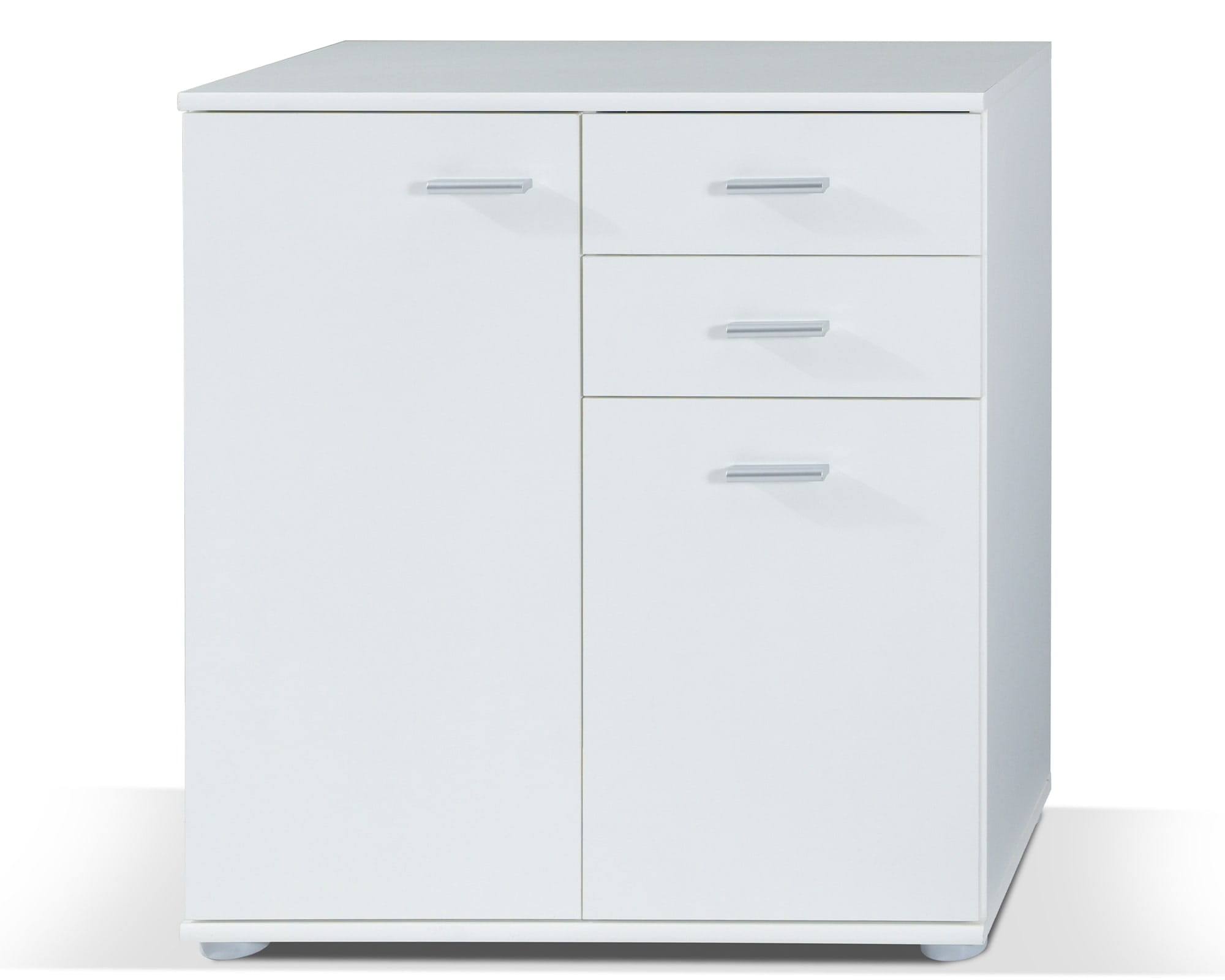 Eine Kommode ist ein Muss für jedes Haus oder jede Wohnung. Eine Kommode mit gut platzierten Einlegeböden oder Schubladen sorgt in jedem Raum für Ordnung. In einer Kommode für das Wohnzimmer können Sie Ihre Filmbibliothek, Ihre Plattensammlung oder Ihren Kleiderschrank unterbringen. Die Kommode findet auch im Schlafzimmer, im Jugendzimmer oder im Flur ihren Platz. Auf der Oberseite des Möbels können Sie alles platzieren, was Sie ausstellen möchten, z. B. wertvolle Andenken oder Fotos Ihrer Lieben. Die Kommode Mike zeichnet sich durch ihr schlichtes und modernes Design aus, mit dem sie sich leicht in jeden Stil einfügen lässt.