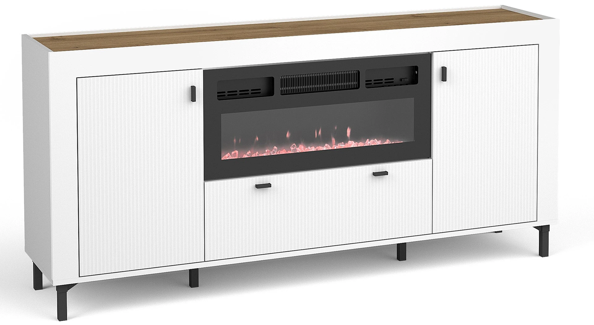 Wohnzimmerkommode Mossa MO7 mit Kamin Weiß/Whiskyeiche