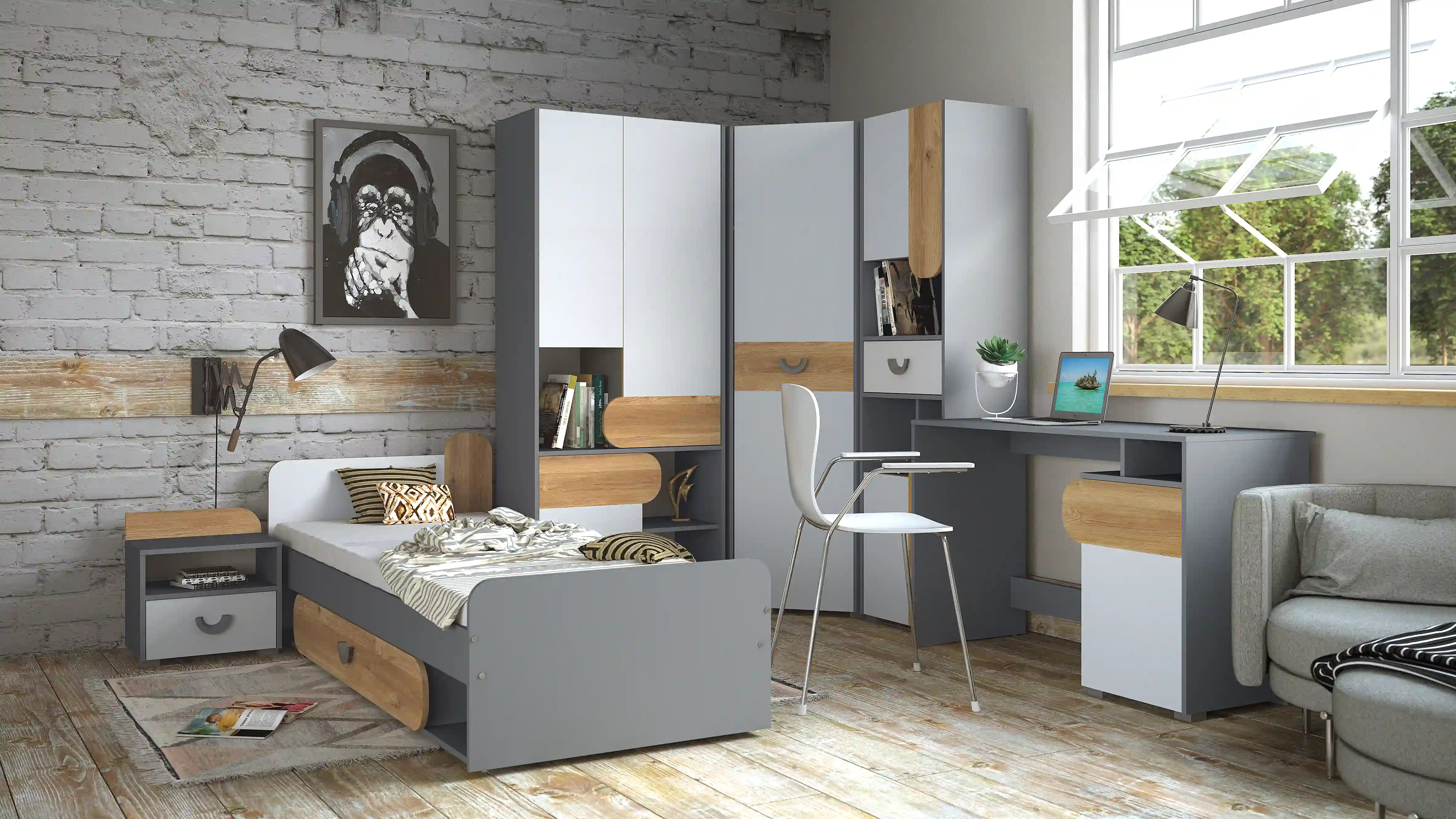 Nachttisch für Jugendzimmer Carini CA12 Nash Eiche/Weiß Brillant/Graphit