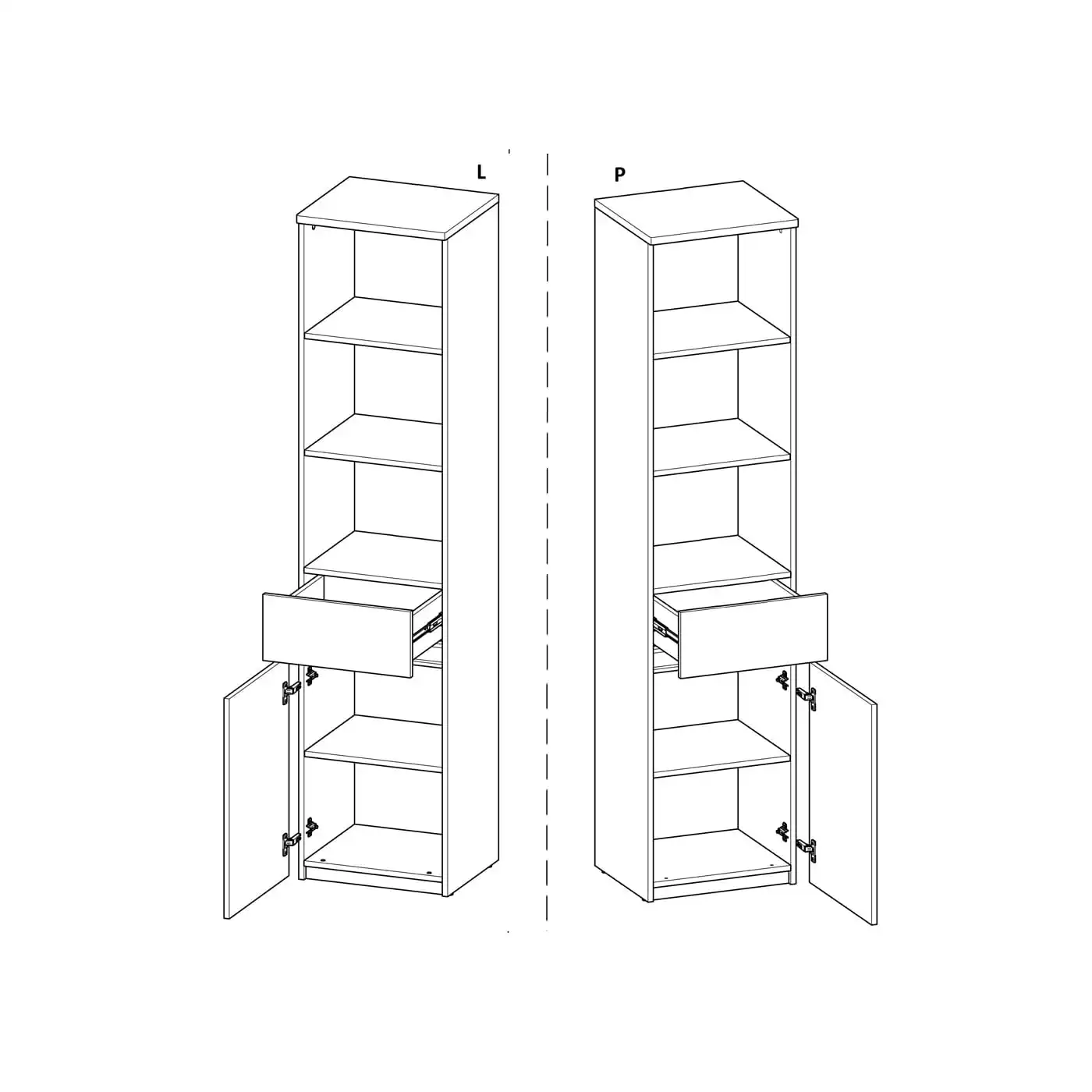 Brauchen Sie mehr Platz für Bücher? Oder fehlt Ihnen der Platz für Ordner? Entscheiden Sie sich für das Bücherregal Arca 03 und erhalten Sie mehr Stauraum für Ihre Sachen. Mit 4 Einlegeböden können Sie Ihre Bücher oder Ordner leicht ordnen. Im Bücherregal finden Sie auch eine geräumige Schublade, in der Sie z. B. Büromaterial unterbringen können. Beim Zusammenbau des Möbels können Sie wählen, in welche Richtung sich die Türen des Bücherregals öffnen sollen. So können Sie das Möbelstück genau auf Ihre Bedürfnisse abstimmen.
