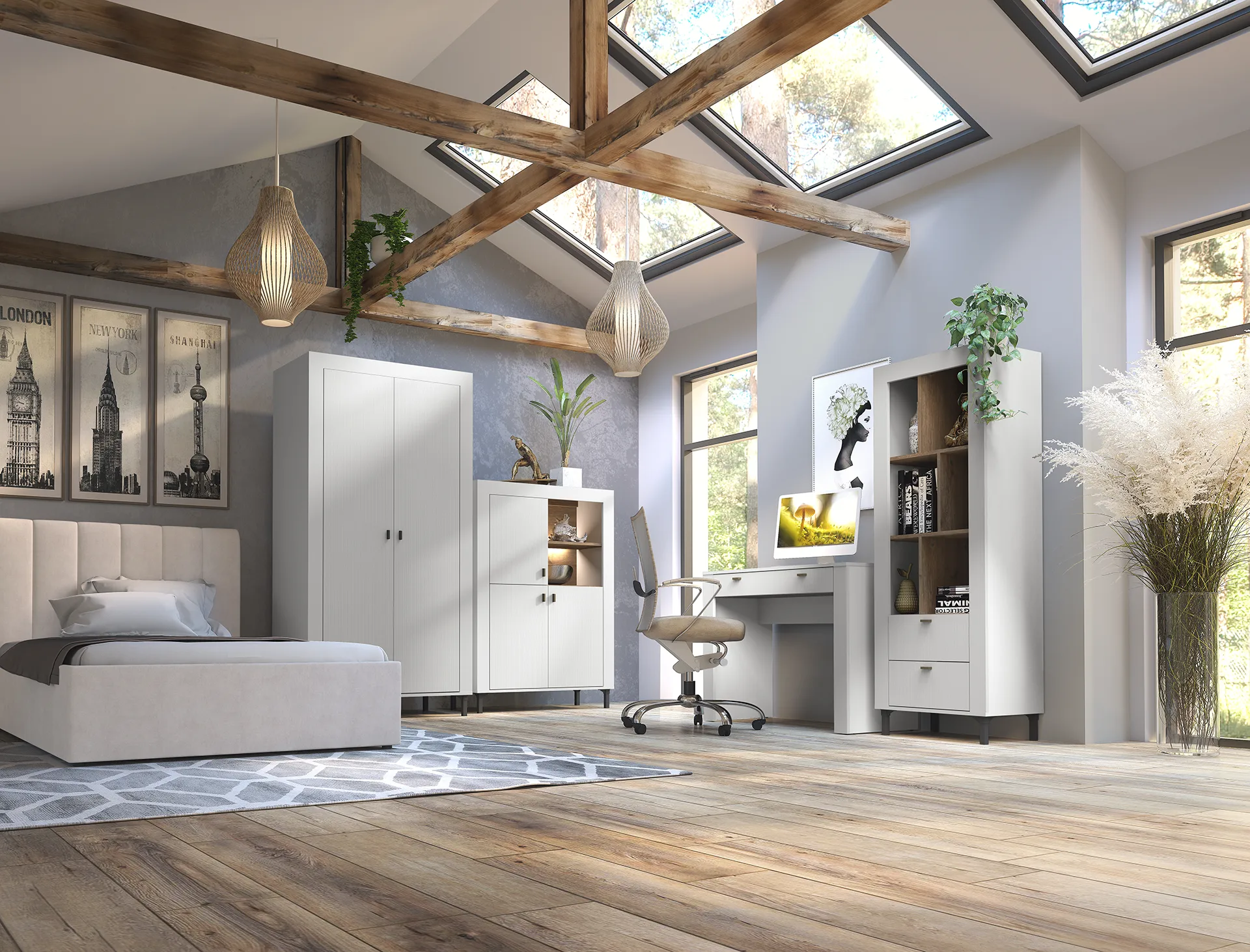 Die Mossa-Kollektion ist ein Synonym für moderne Eleganz, Funktionalität und sorgfältige Handwerkskunst, ideal für eine harmonische Inneneinrichtung. Diese einzigartige Möbellinie umfasst zwei- und dreitürige Kleiderschränke, Kommoden, Einzel- und Doppelbetten, Bücherregale, RTV-Schränke, Frisiertische, Nachttische und Vitrinen. Die Schränke bieten viel Platz für die Aufbewahrung von Kleidung, die Kommoden eignen sich perfekt für die Aufbewahrung verschiedener Gegenstände, und die Betten sorgen für Schlafkomfort und ein elegantes Schlafzimmergefühl. Bücherregale ermöglichen die Präsentation von Büchern und Dekorationen, der RTV-Schrank bietet Platz für den Fernseher und die Mediengeräte, und der Frisiertisch erleichtert die täglichen Vorbereitungen. Der Nachttisch ist eine praktische Ergänzung des Schlafzimmers, während der Vitrinenschrank Geschirr und Dekoration eindrucksvoll in Szene setzt. Jedes Stück der Mossa-Kollektion wurde mit viel Liebe zum Detail entworfen und verbindet Ästhetik mit Funktionalität zu einer stimmigen, luxuriösen Einrichtung.