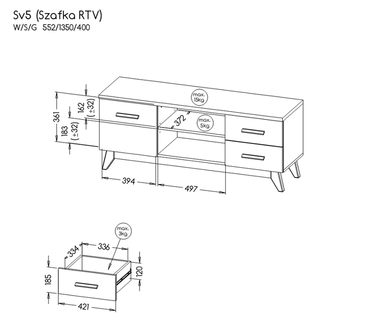 Sven SV3 Schrank - Abmessungen/Spezifikationen: