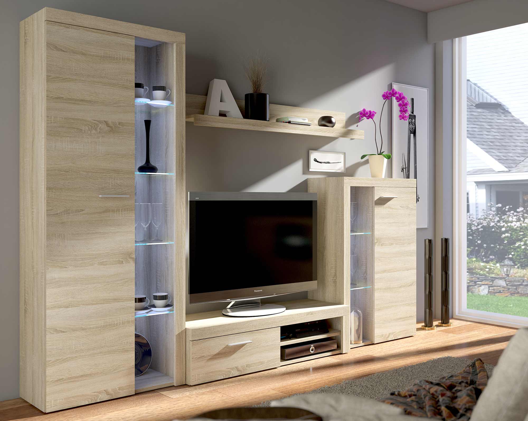 Das Möbel-Set Rumba hat alles, was eine moderne Wohnwand haben sollte. Das Zentrum des Wohnzimmermöbel-Sets ist ein 120 cm breiter RTV-Schrank. Er ist breit genug, um einen großen Wohnzimmerfernseher unterzubringen. Er verfügt über zwei offene Fächer, auf denen ein Satellitendecoder, ein Blu-ray-Player oder eine Spielkonsole Platz finden. Daneben befindet sich ein praktischer und geräumiger Schrank zur Aufbewahrung vieler Discs mit Filmen, Musik oder Spielen. Über dem Fernseher hängt ein 140 cm breites Wandregal. Hier kann man einen Bilderrahmen, eine kleine Vase oder ein Buch unterbringen. Auf beiden Seiten des RTV-Schranks befinden sich auffällige Vitrinen. Die große Vitrine hat fünf offene Fächer, bei denen anstelle einer Holzplatte Glas verwendet wurde. Das kleinere Möbelstück verfügt über drei Glasböden. Dies ist der ideale Platz für wertvolle Andenken, Kristalle oder auch Schmuck. Der erste Blick Ihrer Gäste wird sicherlich auf das Rumba-Set gerichtet sein. .